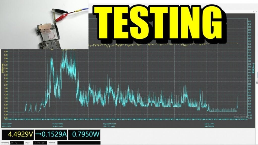 Una vez extraída la placa base, la conectaremos al Power-Z. Desde mi punto de vista, esta herramienta es indispensable en un taller de reparación de móviles. Con el Power-Z puedes entender perfectamente los fallos de la placa base.