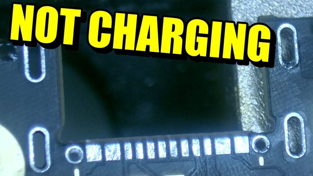 Inspección del Conector de Carga: Bajo el microscopio, inspeccionaremos cuidadosamente el conector de carga. En este caso, observamos signos evidentes de corrosión.
